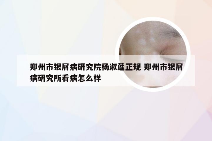 有谁知道郑州银屑病研究所治牛皮癣怎么样