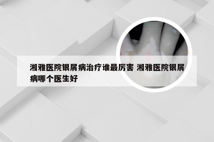 4、中南大学有三所医院,指湘雅医院,湘雅二医院、湘雅三医院,因此湘雅医院即附一。湘雅皮肤科找刘稚然教授,专家门诊周三和周四。本词条由中南大学湘雅医院认证。